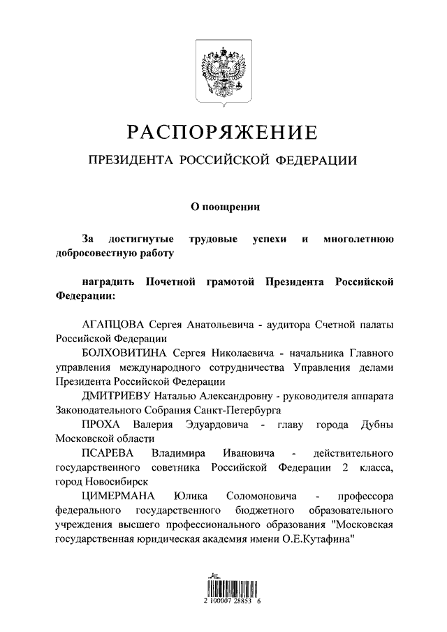 Распоряжение Президента Российской Федерации от 13.12.2011 № 800-рп
