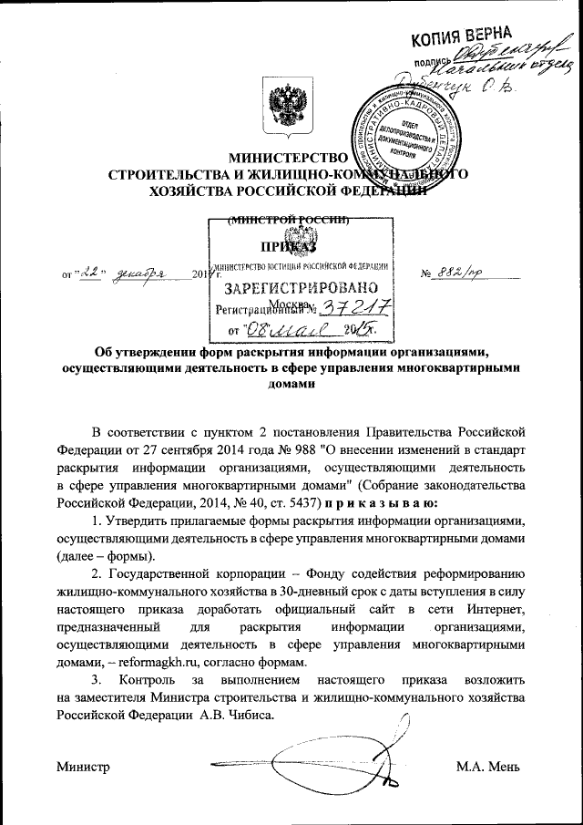 Приказ Министерства строительства и жилищно-коммунального хозяйства Российской Федерации от 22.12.2014 № 882/пр
