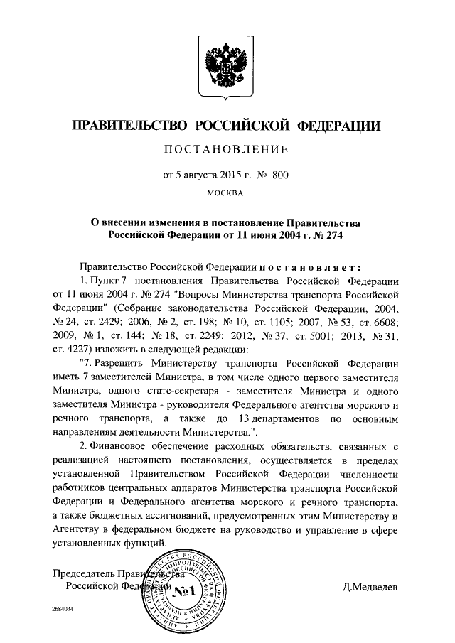 Постановление Правительства Российской Федерации от 05.08.2015 № 800