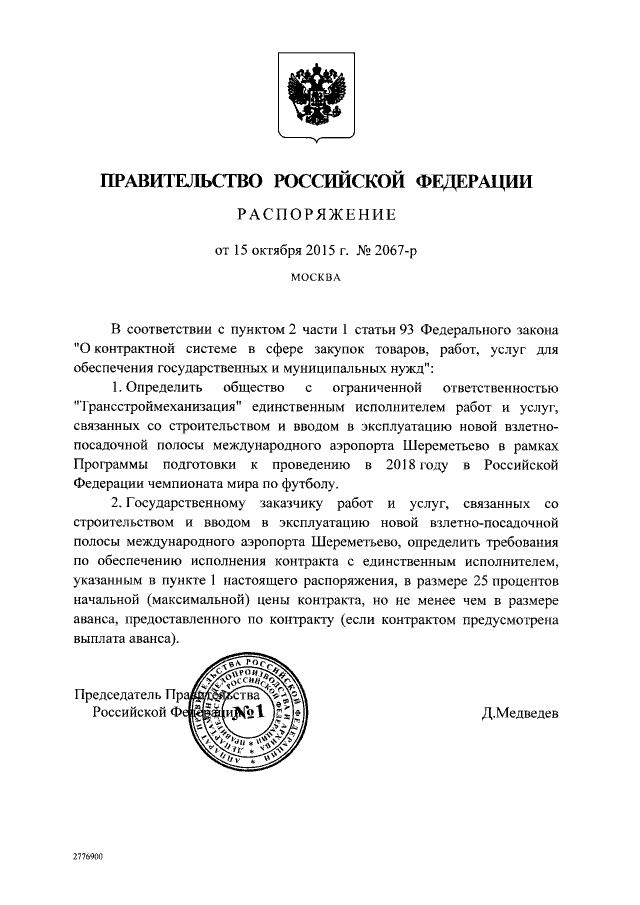 Распоряжение Правительства Российской Федерации от 15.10.2015 № 2067-р