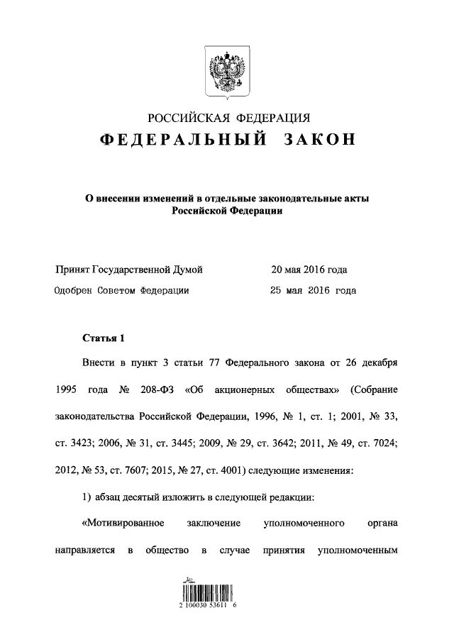 Федеральный закон от 02.06.2016 № 172-ФЗ