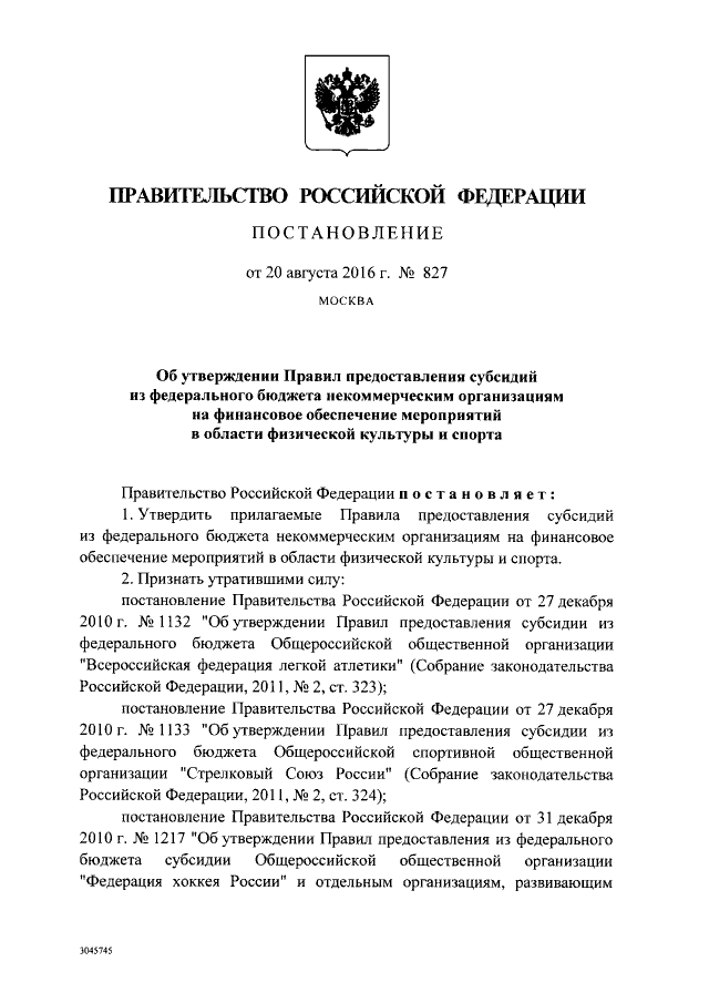 Постановление Правительства Российской Федерации от 20.08.2016 № 827