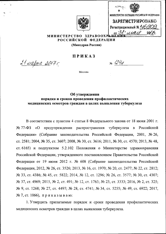 Приказ Министерства здравоохранения Российской Федерации от 21.03.2017 № 124н