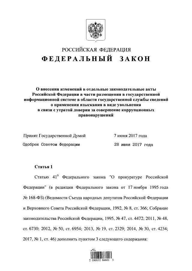 Федеральный закон от 01.07.2017 № 132-ФЗ