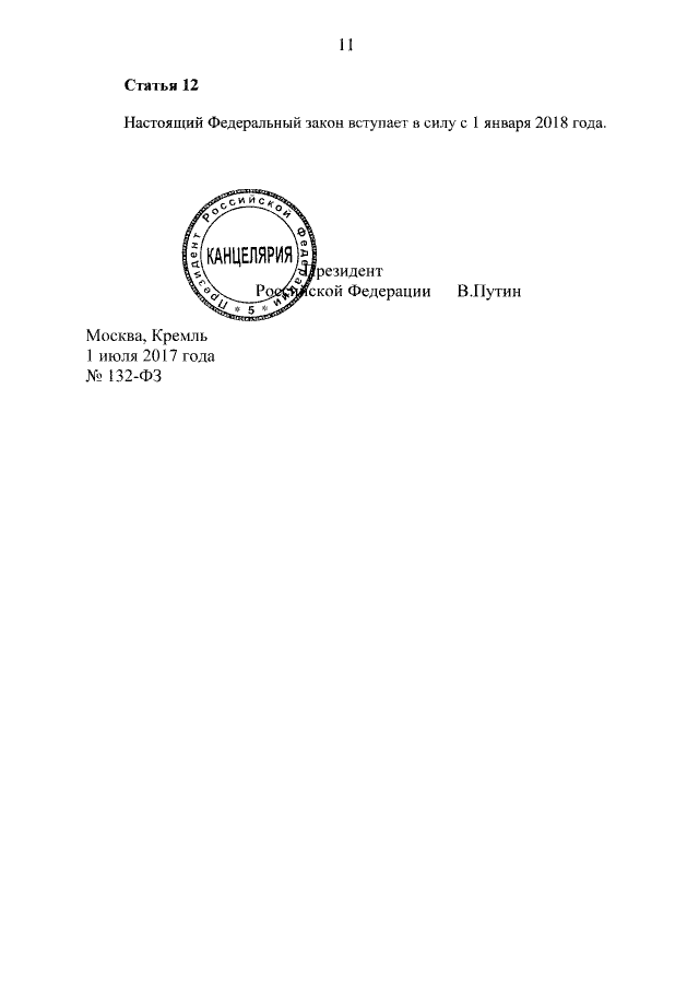 Федеральный закон от 01.07.2017 № 132-ФЗ