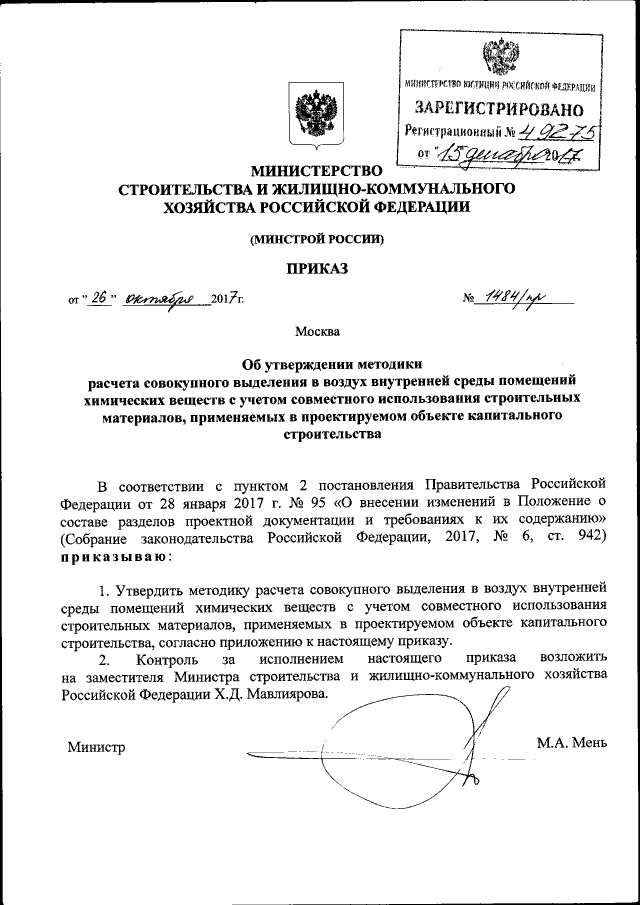 Приказ Министерства строительства и жилищно-коммунального хозяйства Российской Федерации от 26.10.2017 № 1484/пр