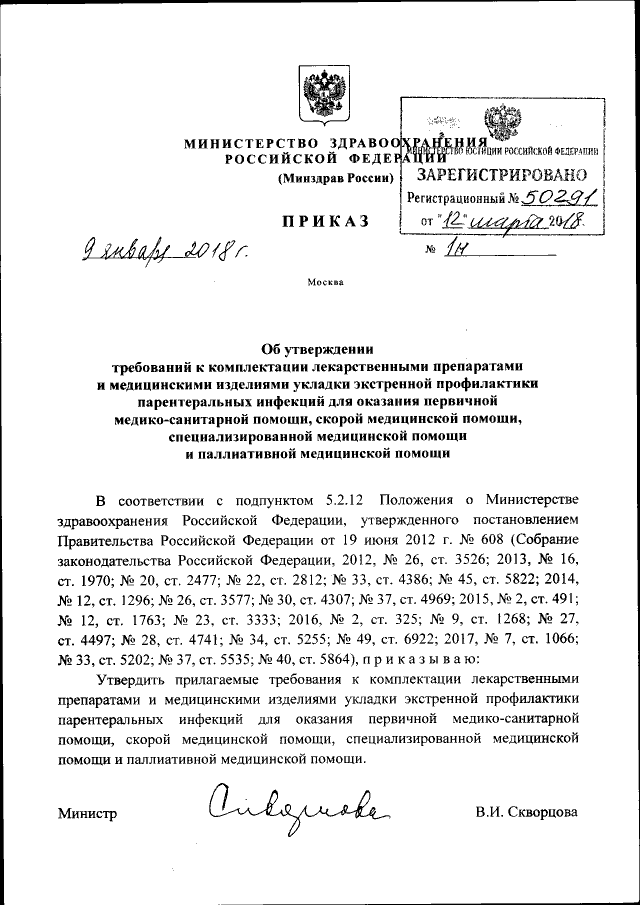 Приказ Министерства здравоохранения Российской Федерации от 09.01.2018 № 1н
