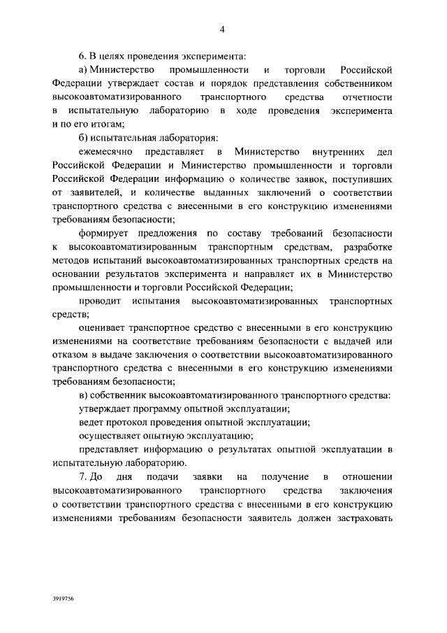 "О проведении эксперимента по опытной эксплуатации на автомобильных дорогах общего пользования высокоавтоматизированных транспортных средств"