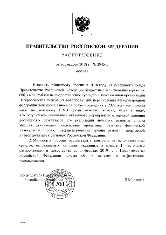 Распоряжение Правительства Российской Федерации от 26.12.2018 № 2945-р