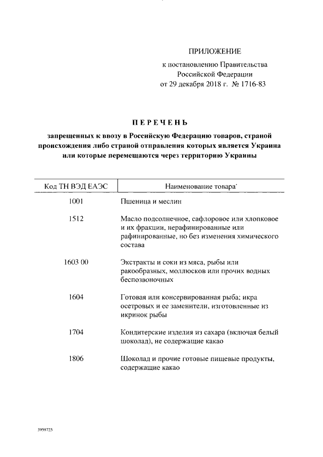 Постановление Правительства Российской Федерации от 29.12.2018 № 1716-83