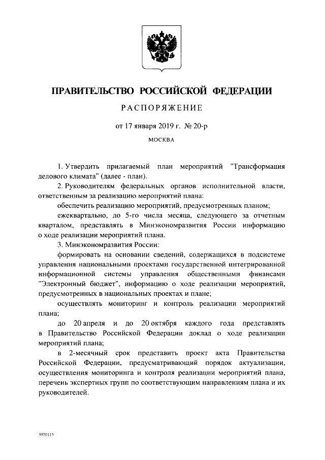 Распоряжение Правительства Российской Федерации от 17.01.2019 № 20-р