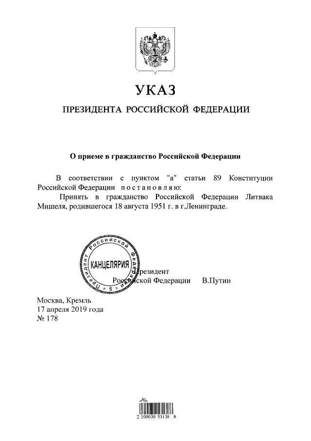 "О приеме в гражданство Российской Федерации"
