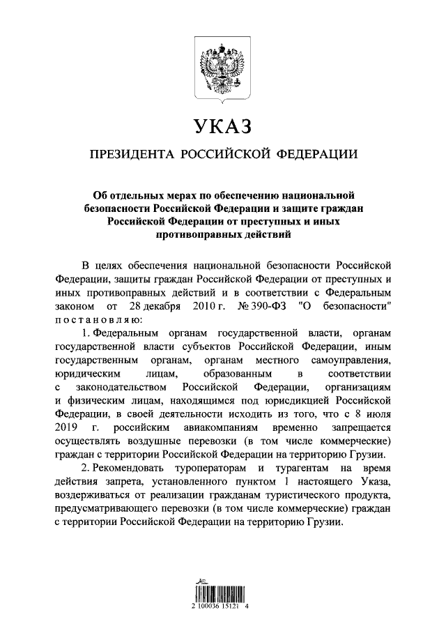 "Об отдельных мерах по обеспечению национальной безопасности Российской Федерации и защите граждан Российской Федерации от преступных и иных противоправных действий"