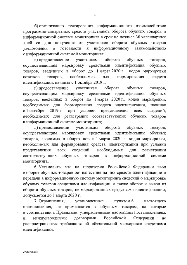 "Об утверждении Правил маркировки обувных товаров средствами идентификации и особенностях внедрения государственной информационной системы мониторинга за оборотом товаров, подлежащих обязательной маркировке средствами идентификации, в отношении обувных товаров"