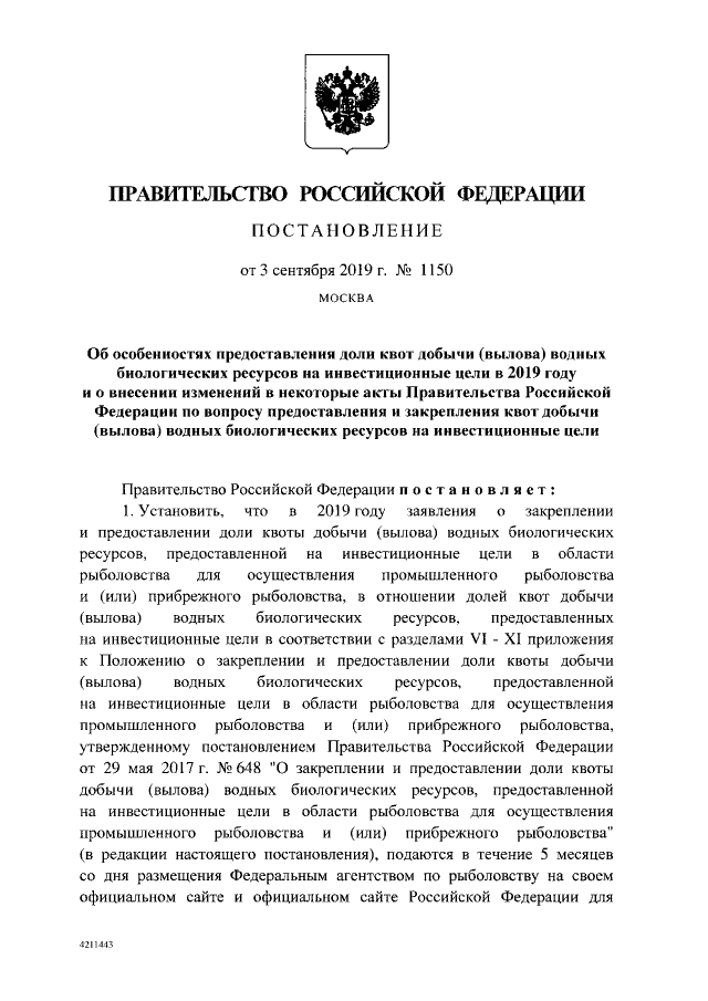 Постановление Правительства Российской Федерации от 03.09.2019 № 1150