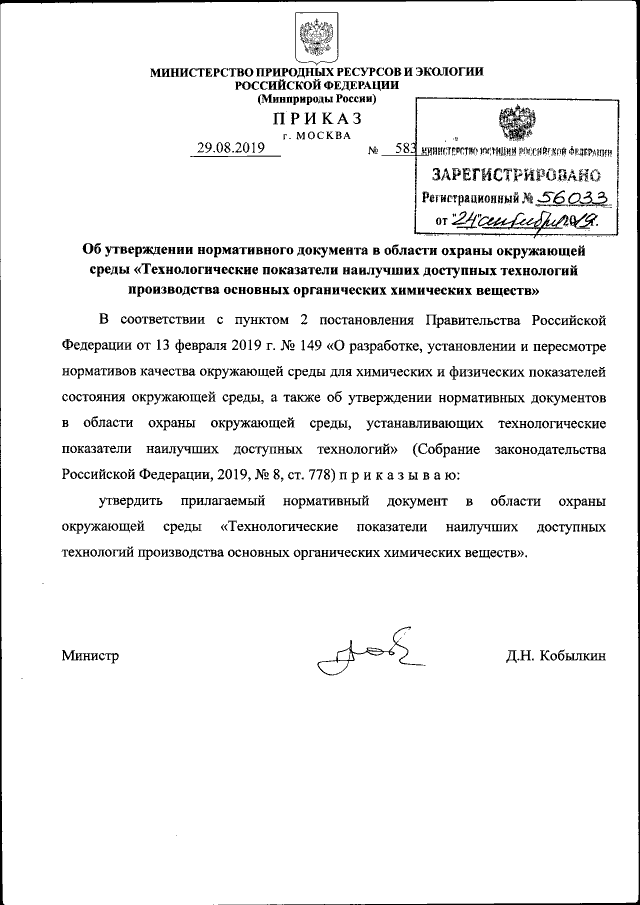 Приказ Министерства природных ресурсов и экологии Российской Федерации от 29.08.2019 № 583