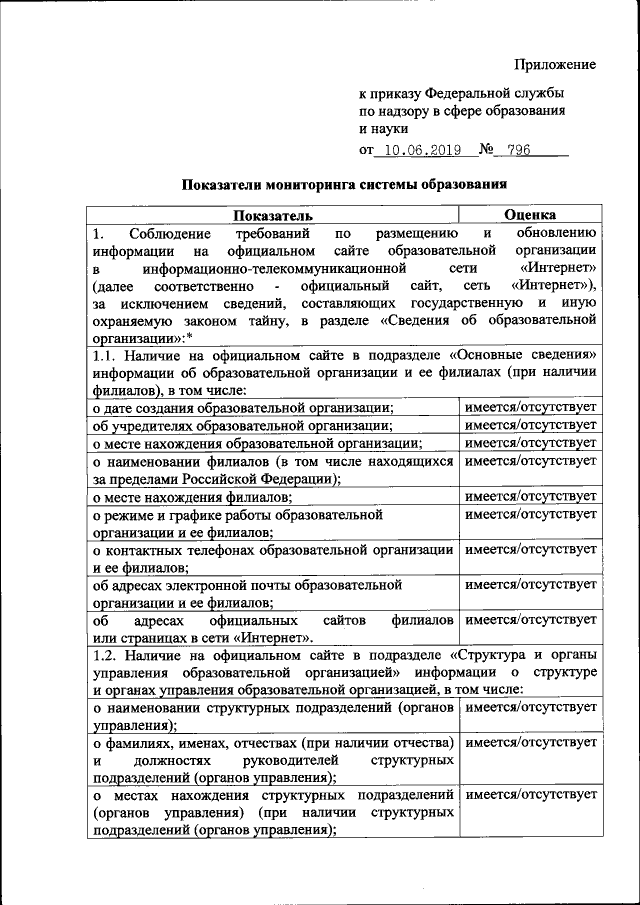 Приказ Федеральной службы по надзору в сфере образования и науки от 10.06.2019 № 796