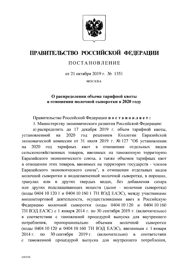 Постановление Правительства Российской Федерации от 21.10.2019 № 1351