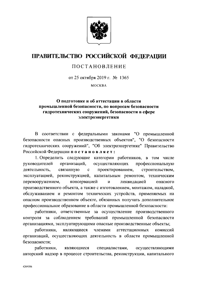 Постановление Правительства Российской Федерации от 25.10.2019 № 1365