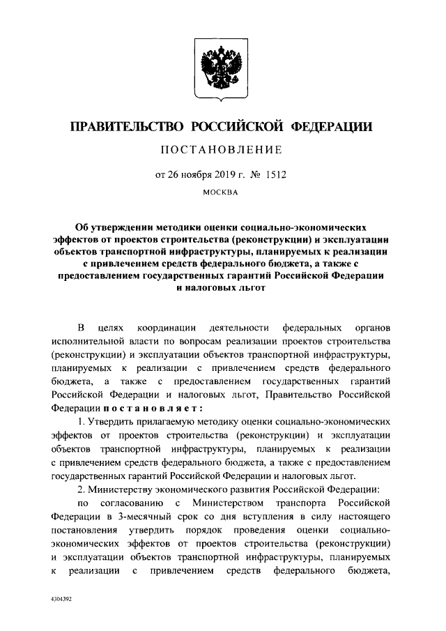 Постановление Правительства Российской Федерации от 26.11.2019 № 1512