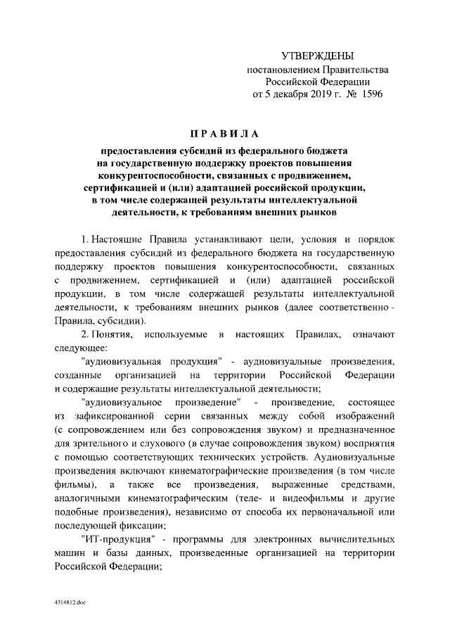 Постановление Правительства Российской Федерации от 05.12.2019 № 1596