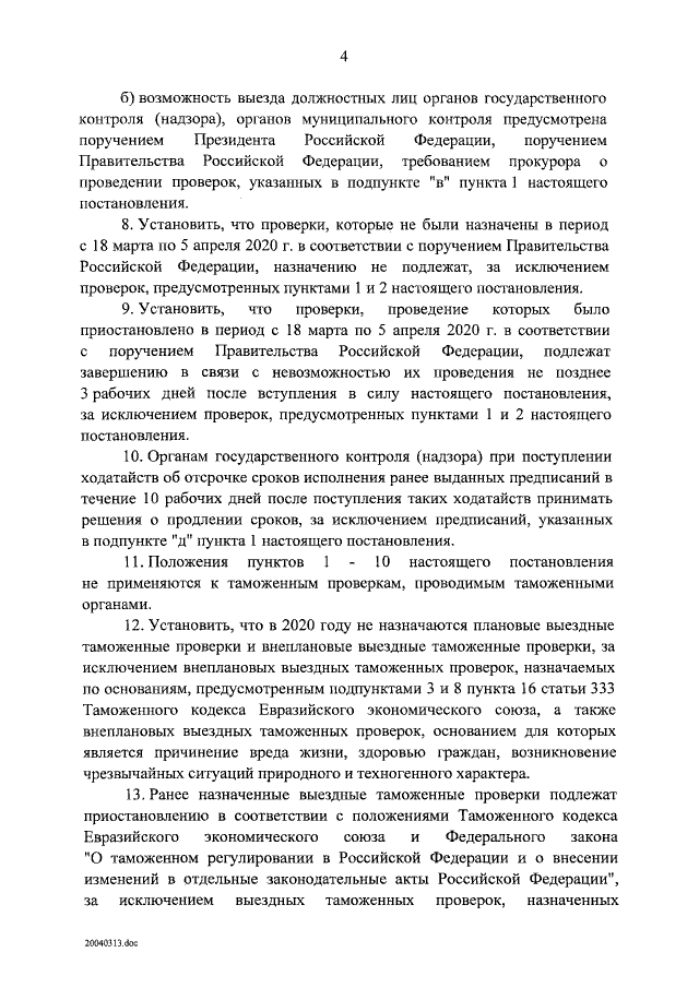 "Об особенностях осуществления в 2020 году государственного контроля (надзора), муниципального контроля и о внесении изменения в пункт 7 Правил подготовки органами государственного контроля (надзора) и органами муниципального контроля ежегодных планов проведения плановых проверок юридических лиц и индивидуальных предпринимателей"