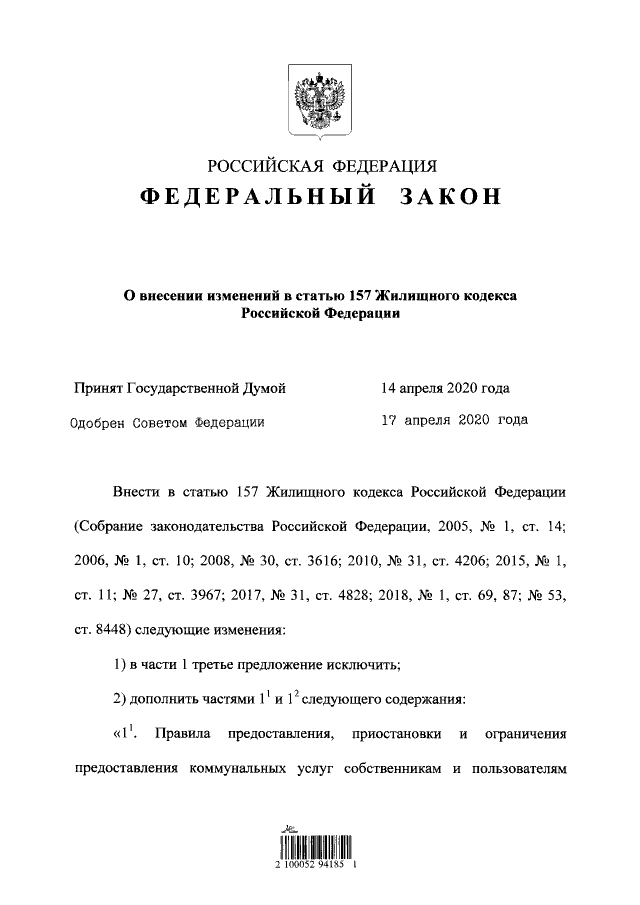 "О внесении изменений в статью 157 Жилищного кодекса Российской Федерации"