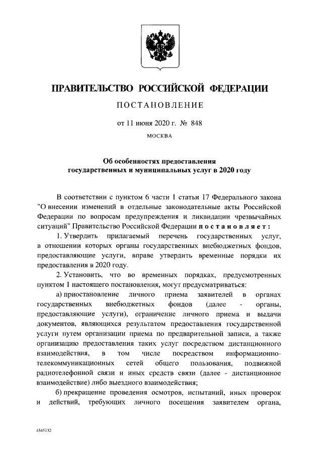 Постановление Правительства Российской Федерации от 11.06.2020 № 848
