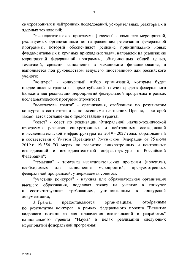 "Об утверждении Правил предоставления грантов в форме субсидий из федерального бюджета на реализацию отдельных мероприятий Федеральной научно-технической программы развития синхротронных и нейтронных исследований и исследовательской инфраструктуры на 2019 - 2027 годы"