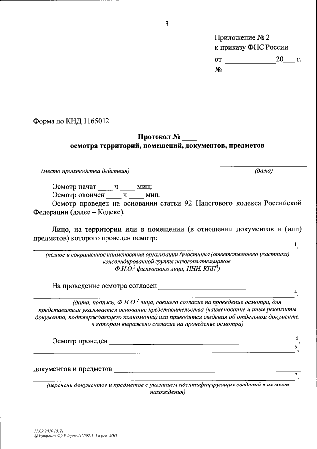 "О внесении изменений в приказ Федеральной налоговой службы от 07.11.2018 № ММВ-7-2/628@ "Об утверждении форм документов, предусмотренных Налоговым кодексом Российской Федерации и используемых налоговыми органами при реализации своих полномочий в отношениях, регулируемых законодательством о налогах и сборах, оснований и порядка продления срока проведения выездной налоговой проверки, требований к документам, представляемым в налоговый орган на бумажном носителе, порядка взаимодействия налоговых органов по выполнению поручений об истребовании документов, требований к составлению акта налоговой проверки, требований к составлению акта об обнаружении фактов, свидетельствующих о предусмотренных Налоговым кодексом Российской Федерации налоговых правонарушениях (за исключением налоговых правонарушений, дела о выявлении которых рассматриваются в порядке, установленном статьей 101 Налогового кодекса Российской Федерации)"