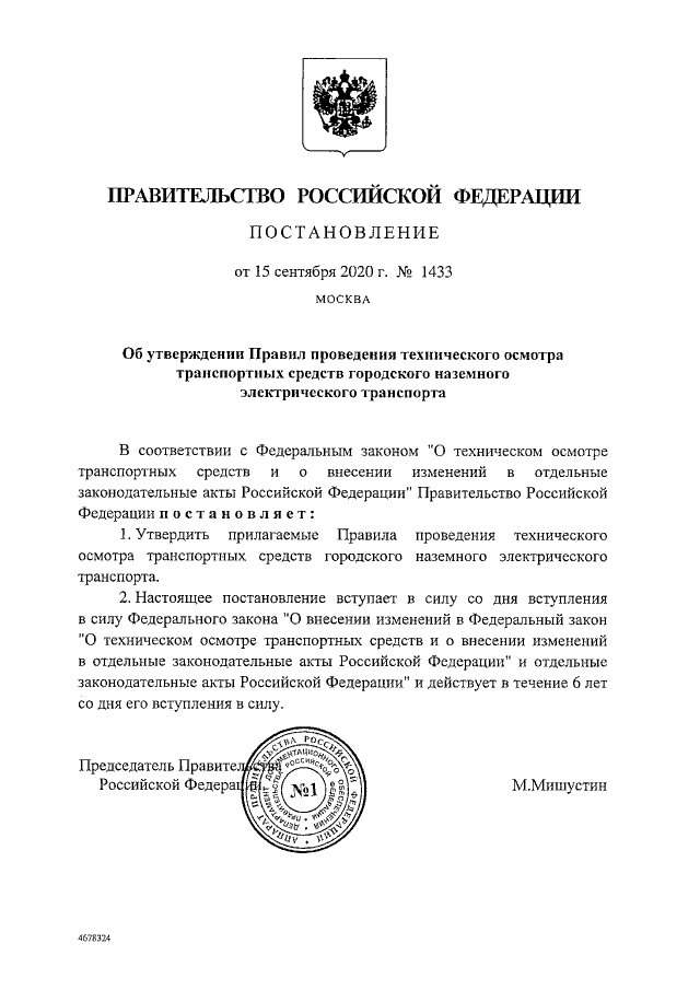 Постановление Правительства Российской Федерации от 15.09.2020 № 1433