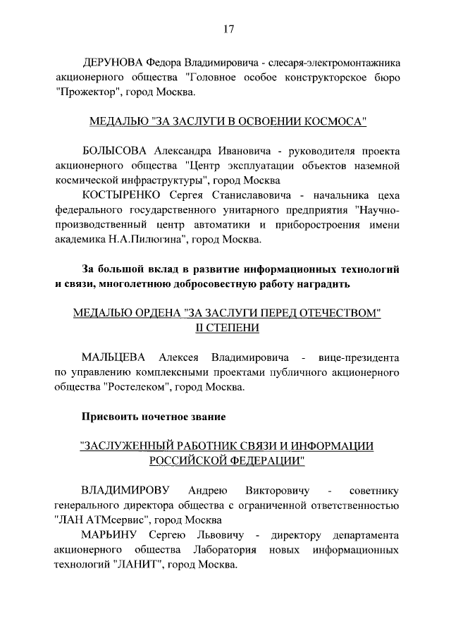 "О награждении государственными наградами Российской Федерации"