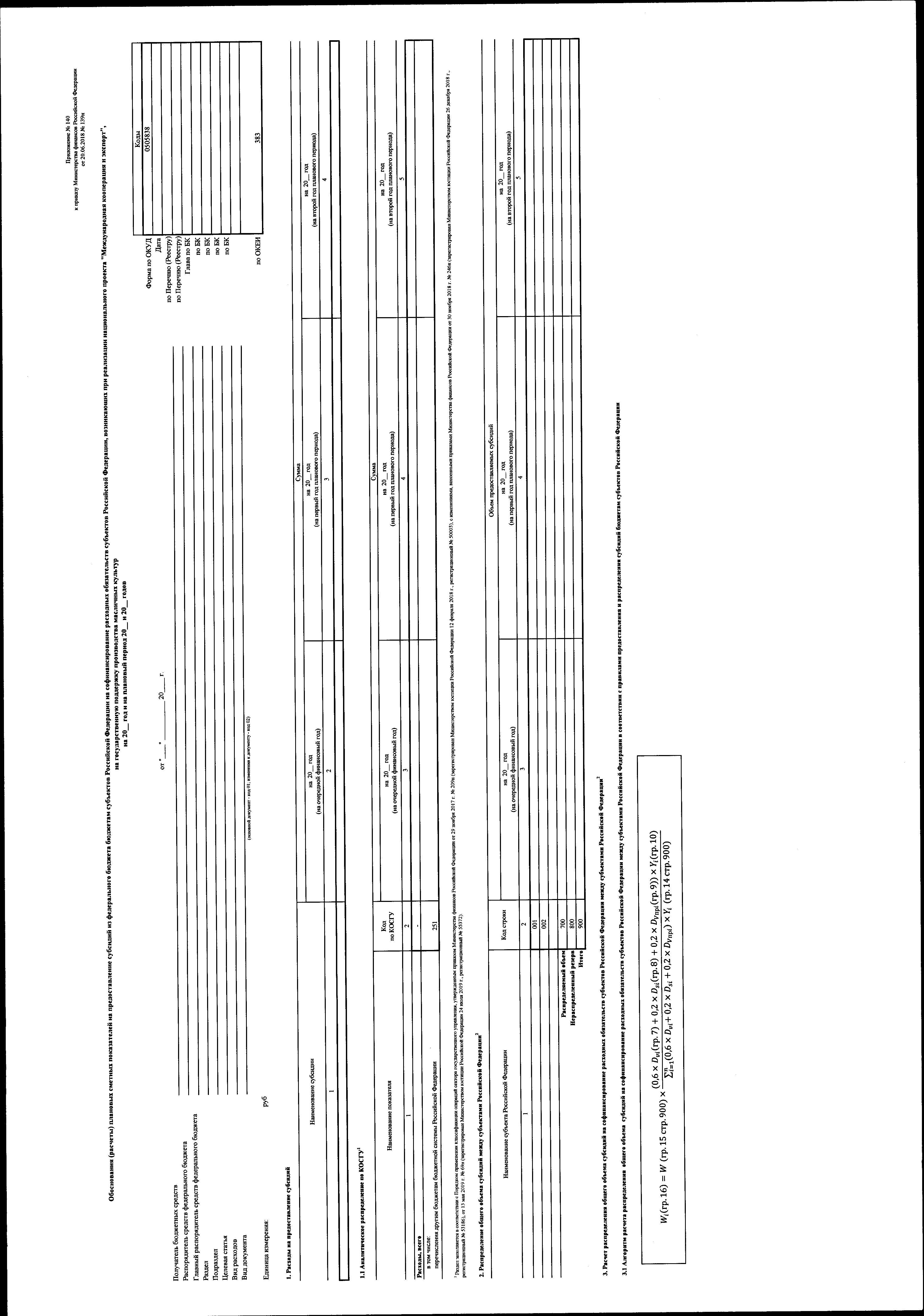 "О внесении изменений в приказ Министерства финансов Российской Федерации от 20 июня 2018 г. № 139н "Об утверждении форм обоснований (расчетов) плановых сметных показателей, применяемых при составлении и ведении бюджетных смет федеральных казенных учреждений"