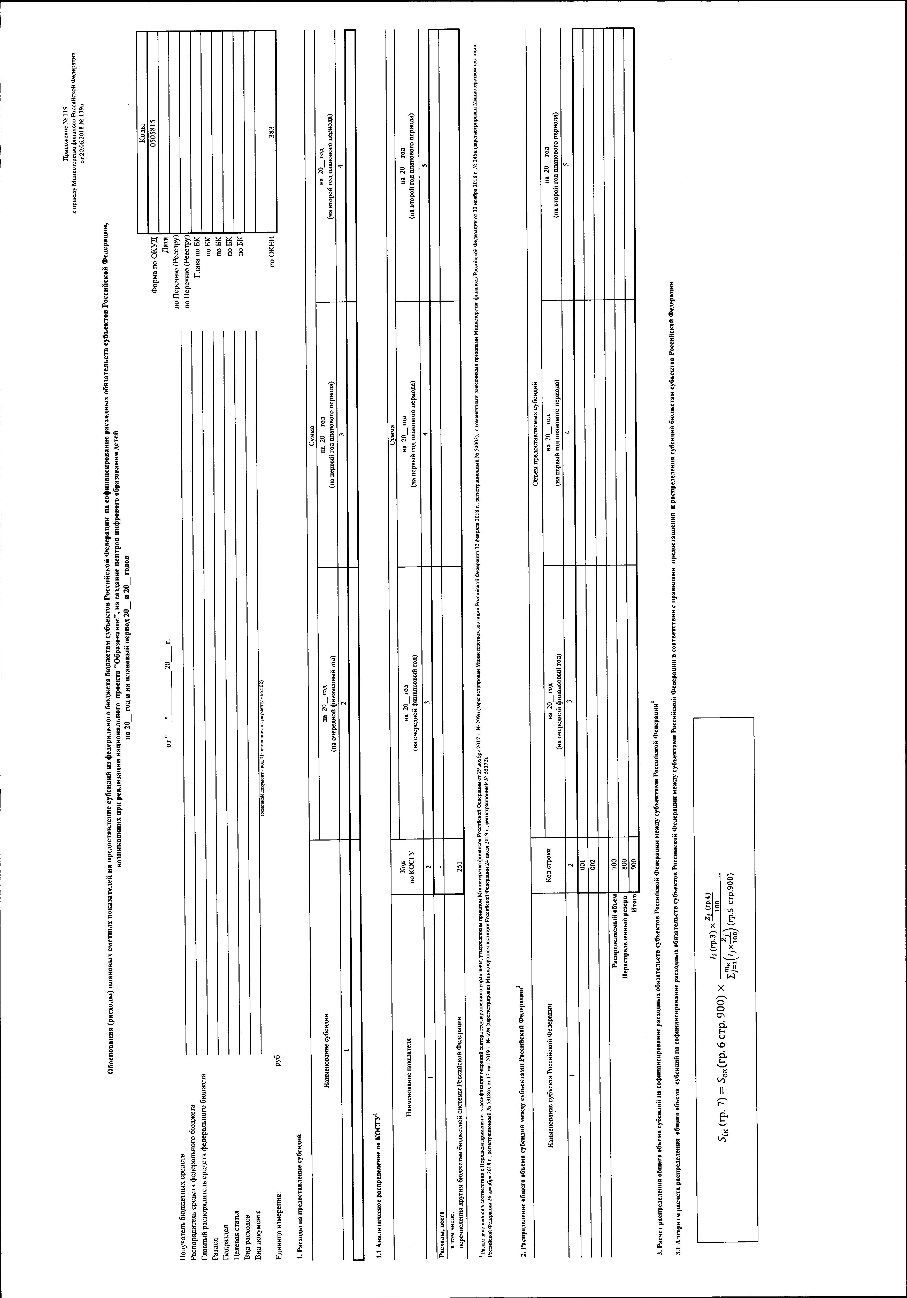 "О внесении изменений в приказ Министерства финансов Российской Федерации от 20 июня 2018 г. № 139н "Об утверждении форм обоснований (расчетов) плановых сметных показателей, применяемых при составлении и ведении бюджетных смет федеральных казенных учреждений"