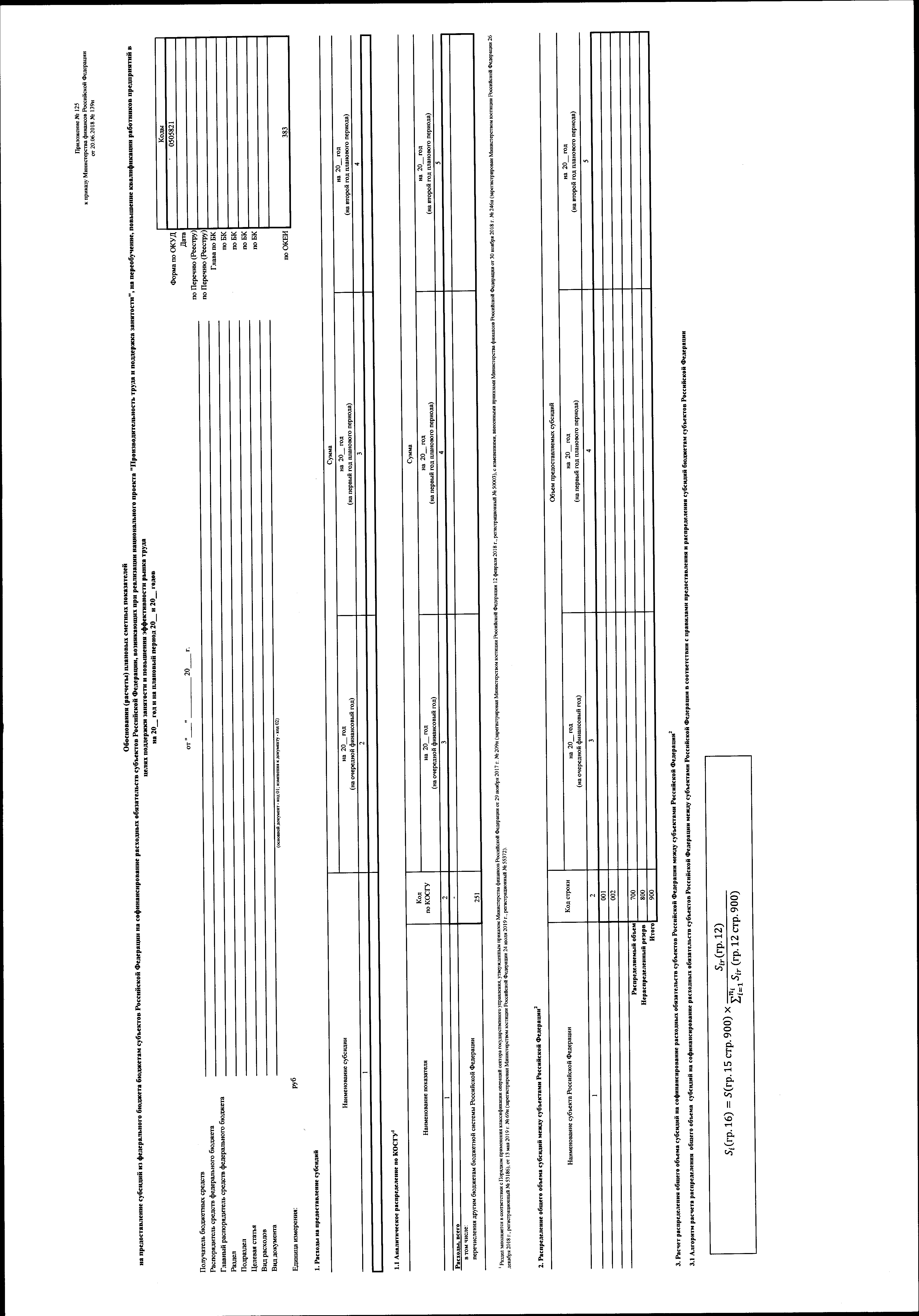 "О внесении изменений в приказ Министерства финансов Российской Федерации от 20 июня 2018 г. № 139н "Об утверждении форм обоснований (расчетов) плановых сметных показателей, применяемых при составлении и ведении бюджетных смет федеральных казенных учреждений"