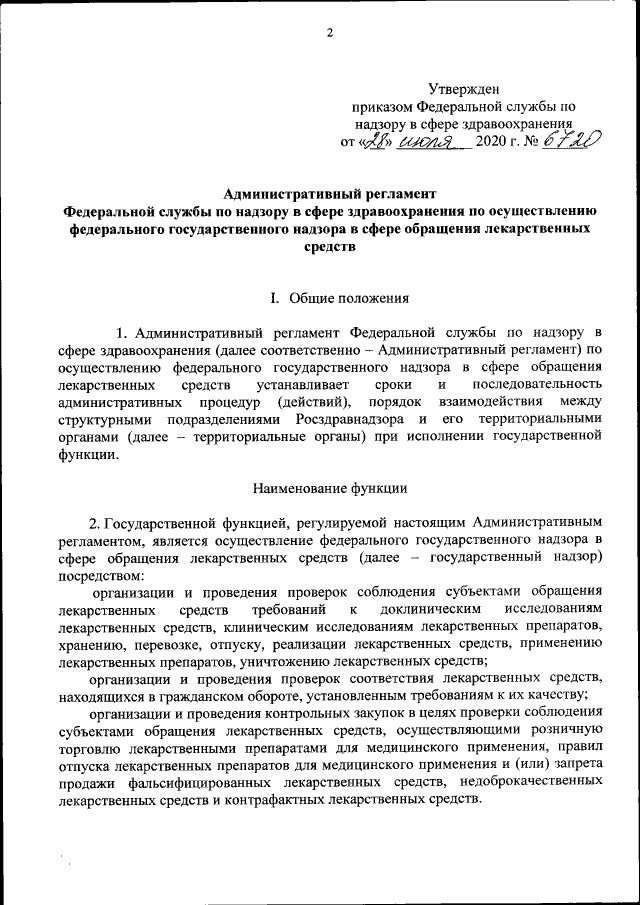 Приказ Федеральной службы по надзору в сфере здравоохранения от 28.07.2020 № 6720
