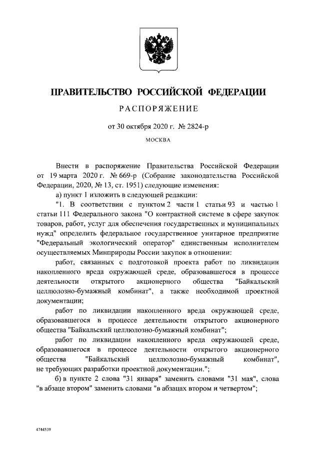 Распоряжение Правительства Российской Федерации от 30.10.2020 № 2824-р