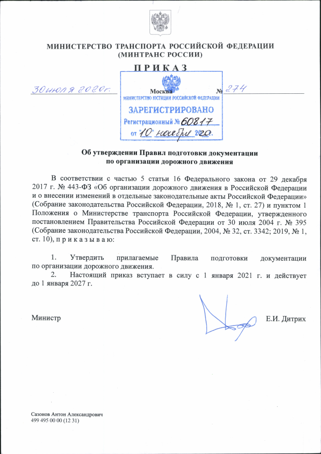 Приказ Министерства транспорта Российской Федерации от 30.07.2020 № 274
