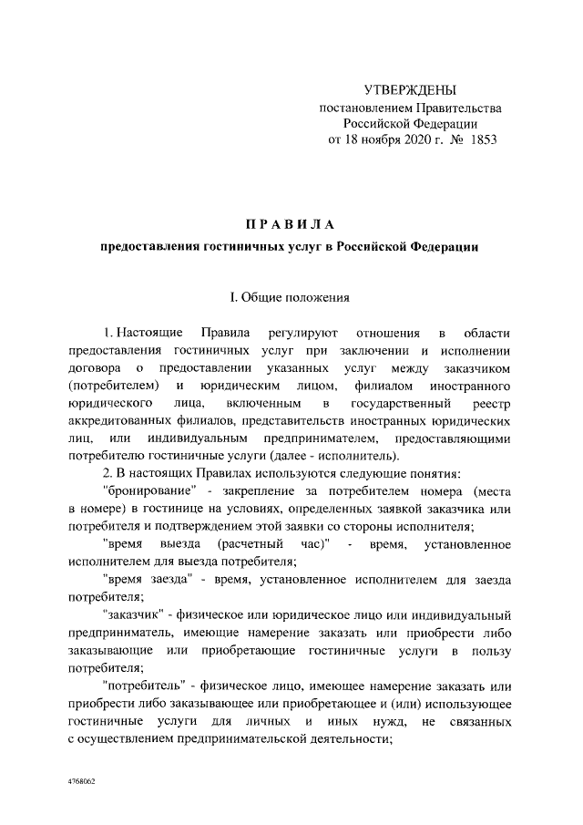 Постановление Правительства Российской Федерации от 18.11.2020 № 1853