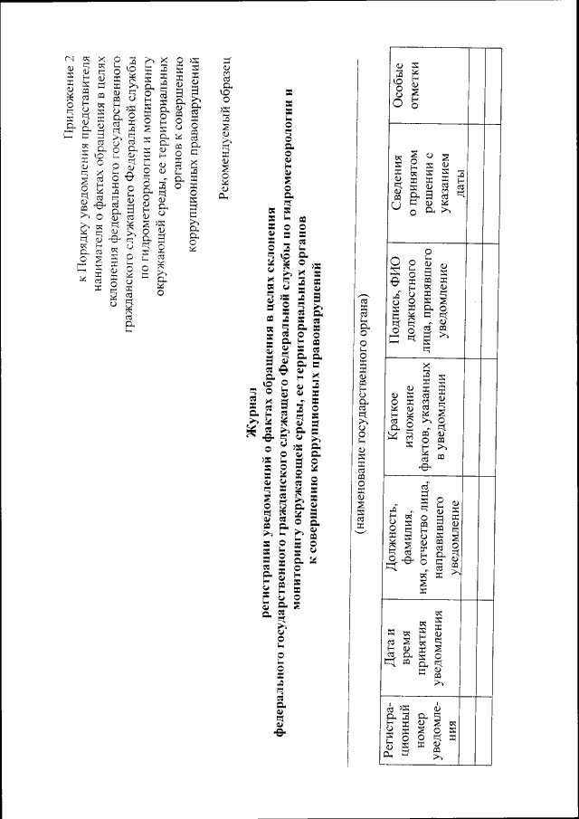 "Об утверждении Порядка уведомления представителя нанимателя о фактах обращения в целях склонения федерального государственного гражданского служащего Федеральной службы по гидрометеорологии и мониторингу окружающей среды, ее территориальных органов к совершению коррупционных правонарушений"