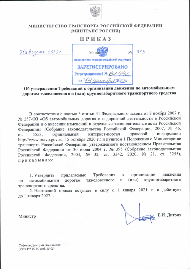 Приказ Министерства транспорта Российской Федерации от 31.08.2020 № 343