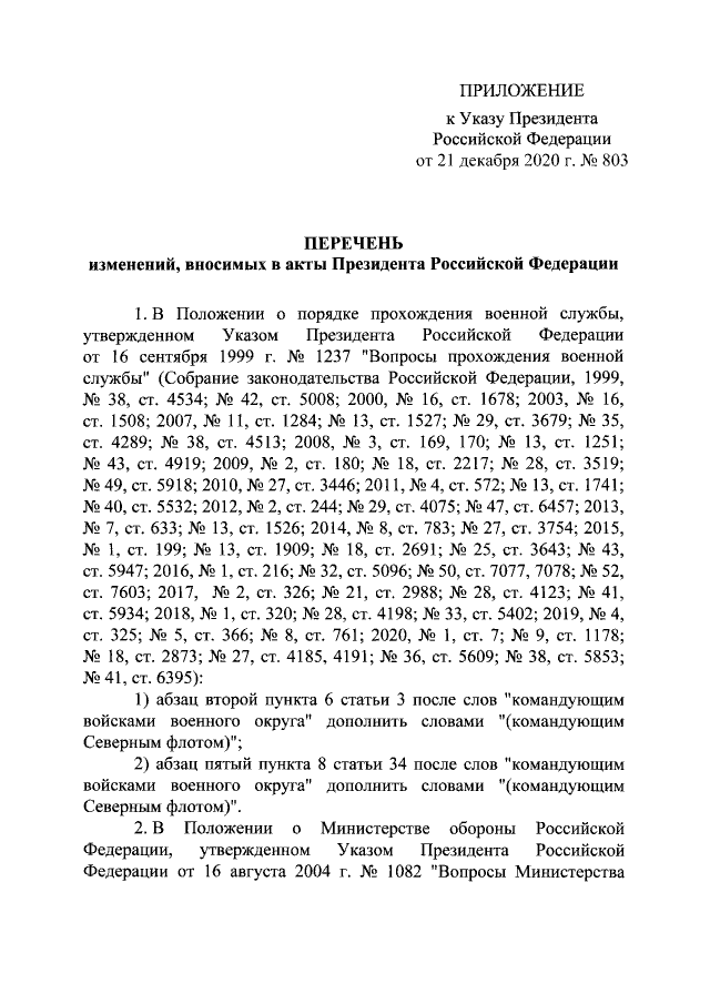 Указ Президента Российской Федерации от 21.12.2020 № 803