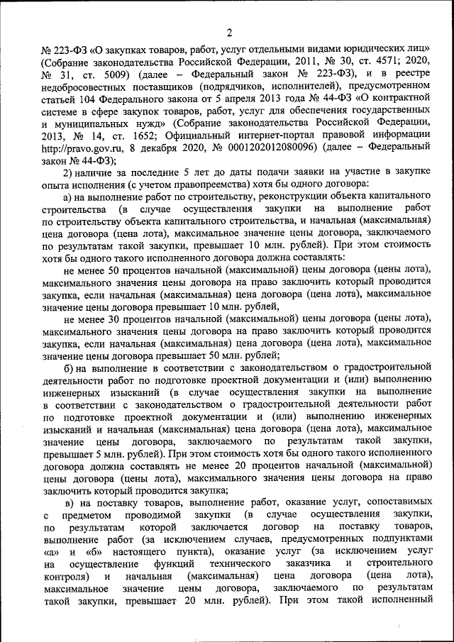 "Об обязательных квалификационных требованиях к участникам закупок, связанных с поставкой товаров, выполнением работ или оказанием услуг, необходимых для завершения строительства объекта незавершенного строительства или объекта инфраструктуры, права на которые переданы в порядке, предусмотренном статьями 201-15-1 — 201-15-2-1 Федерального закона от 26 октября 2002 г. № 127-ФЗ "О несостоятельности (банкротстве)"