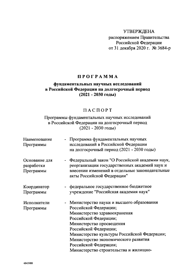 Распоряжение Правительства Российской Федерации от 31.12.2020 № 3684-р