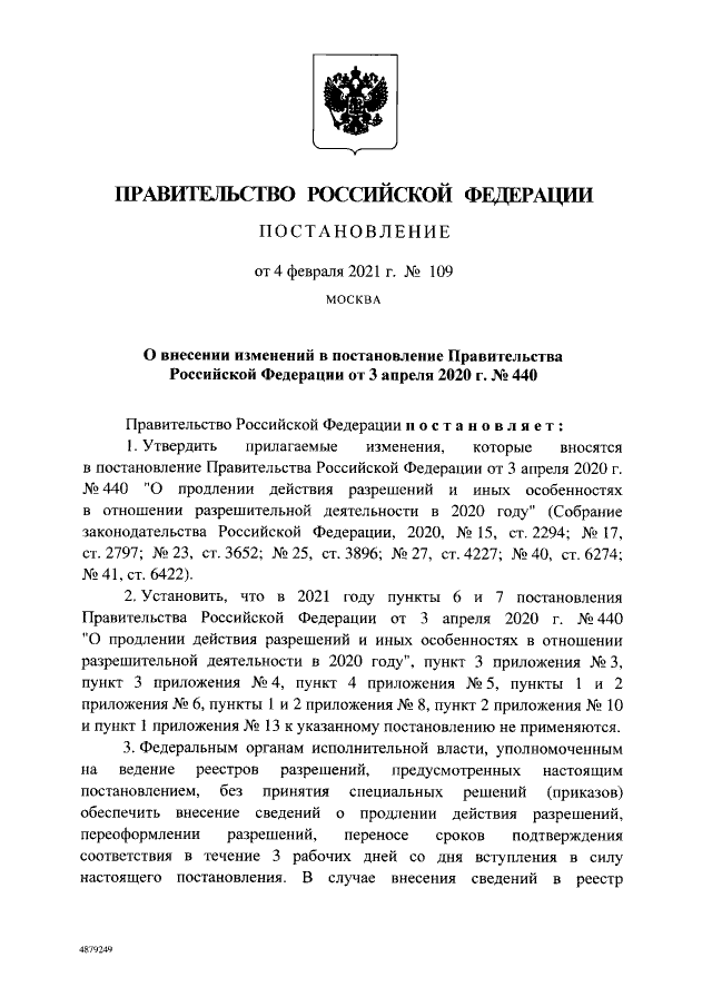 Постановление Правительства Российской Федерации от 04.02.2021 № 109