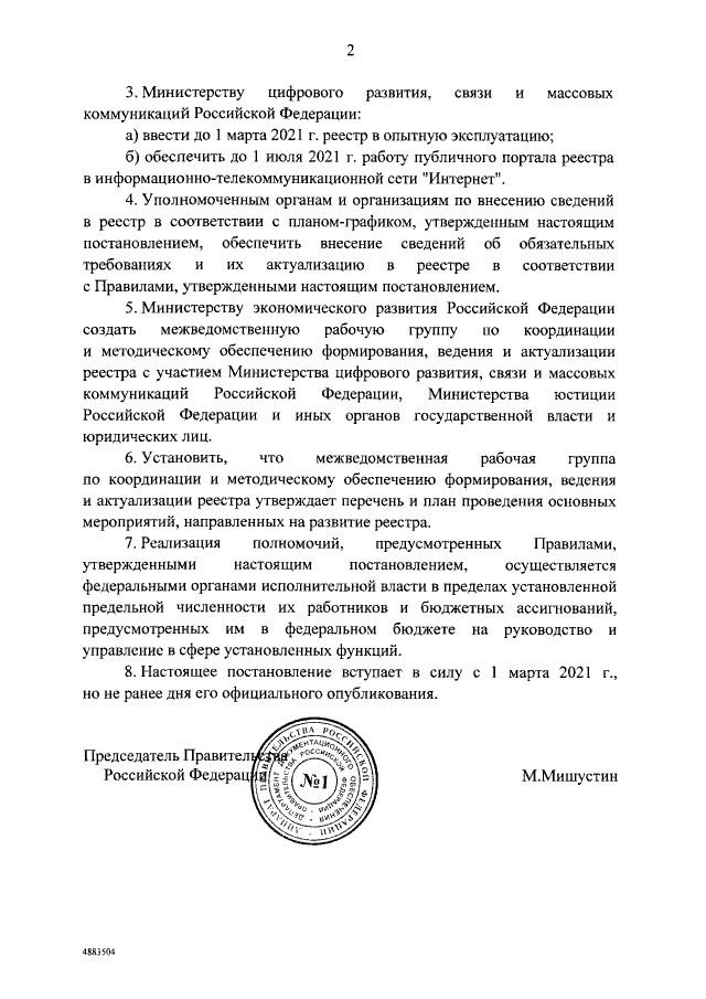 "Об утверждении Правил формирования, ведения и актуализации реестра обязательных требований"