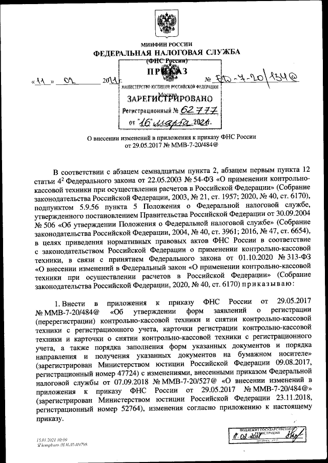 Приказ Федеральной налоговой службы от 11.02.2021 № ЕД-7-20/134@