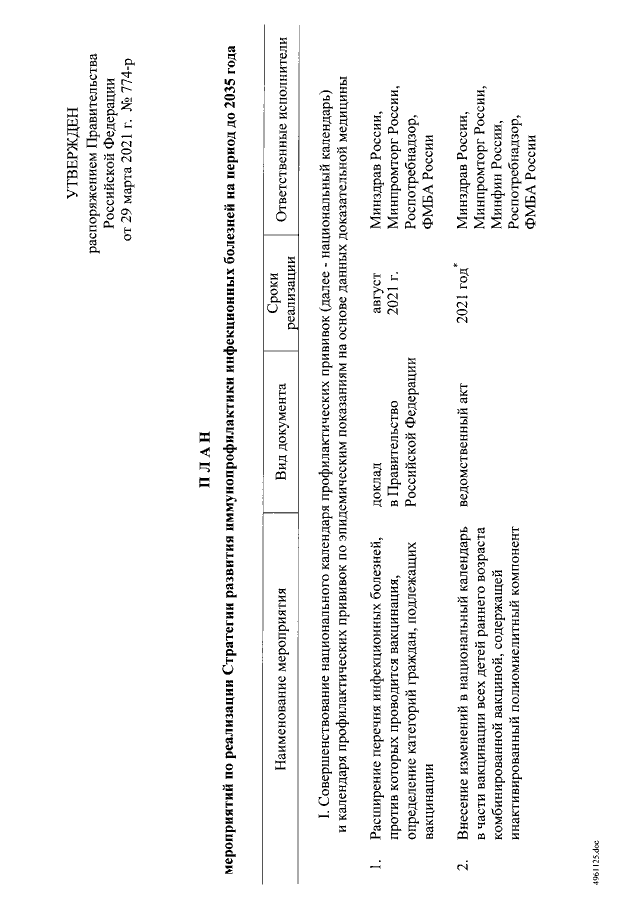 Распоряжение Правительства Российской Федерации от 29.03.2021 № 774-р