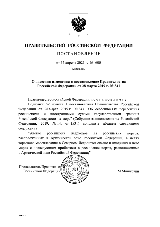 Постановление Правительства Российской Федерации от 15.04.2021 № 600