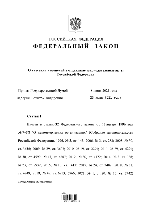 Федеральный закон от 02.07.2021 № 352-ФЗ